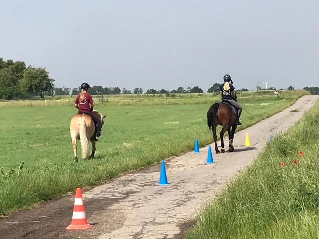 Unser geliebter Reiterhof Cham Badi liegt inmitten einer schönen Umgebung. Wir haben einige Möglichkeiten zum Ausreiten, da wir gleich nach dem Verlassen des Hofes in der Feldmark sind. Weitläufige Felder und überwiegend ebene Wege machen einen drei Stunden Ausritt nicht utopisch. Zwar müssen die Ausreiter hier und da eine Straße überqueren, aber unsere lieben Pferde sind Straßen erprobt und tragen uns sicher wieder nach Hause..