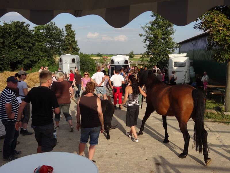 Der erste Tag des Anweidens ist immer ein großes Event. Die Pferde gehen nach langer Paddockzeit endlich auf die großen, saftigen Wiesen. In den ersten drei Tagen stehen sie zwei Stunden, die weiteren drei Tage stehen sie drei Stunden und nach ca. einer Woche bleiben sie von 09:00-17:00 Uhr auf der Weide.